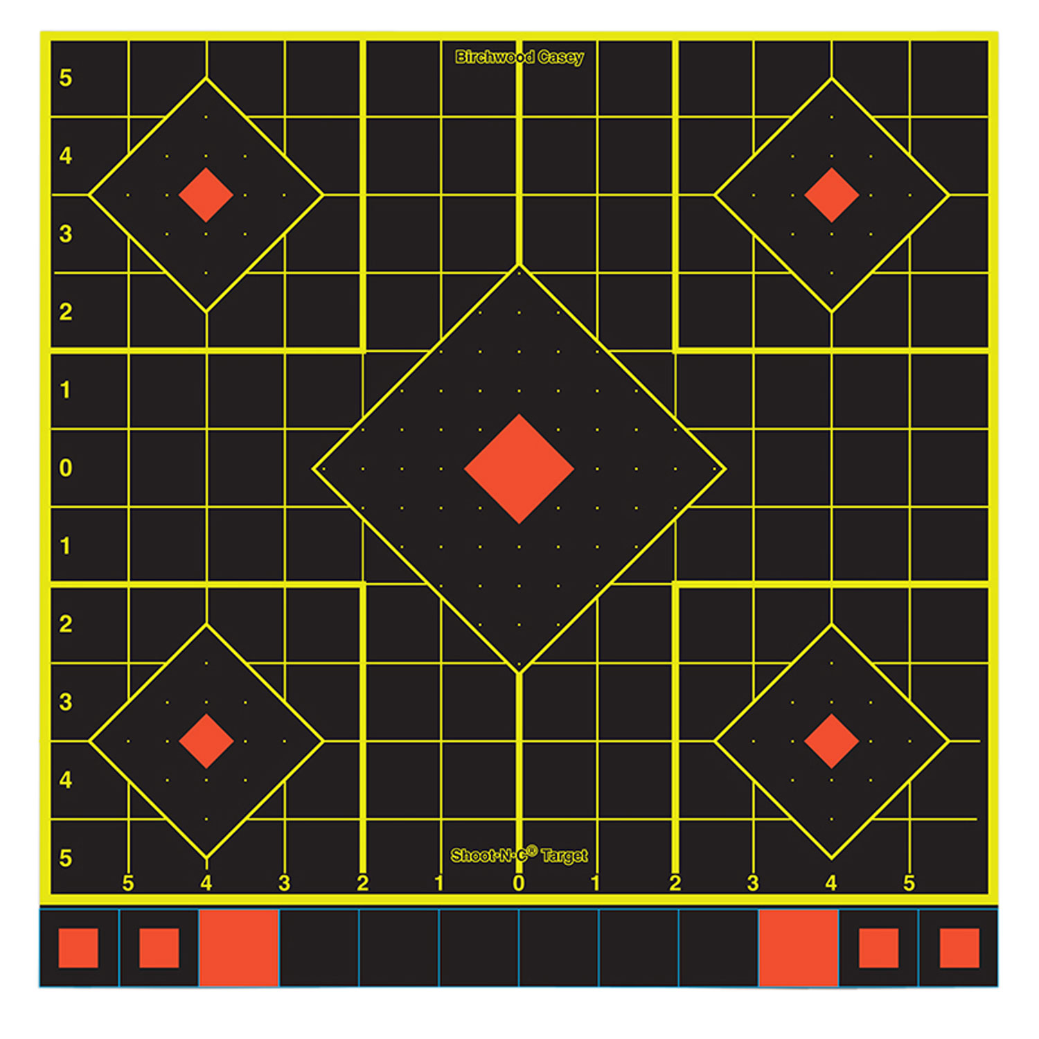 Birchwood Casey 34211 Shoot-N-C Sight-In Self-Adhesive Paper Black/Yellow/Red 12″ 5-Diamond 100 Pack