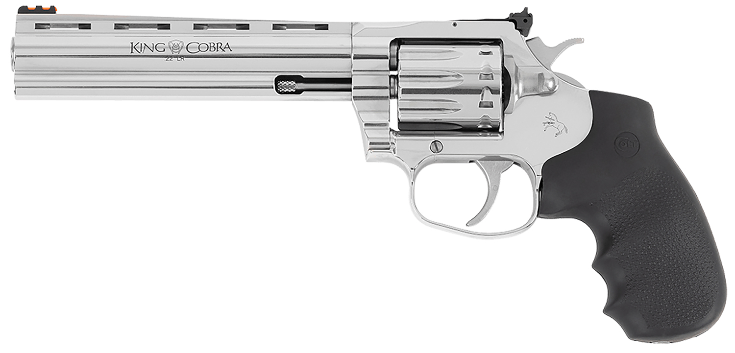 Colt Mfg KCOBRA22-SP6RFO King Cobra Target 22 LR 10rd 6″ Stainless Steel Barrel, Cylinder & Frame, Black Hogue Overmolded Grips