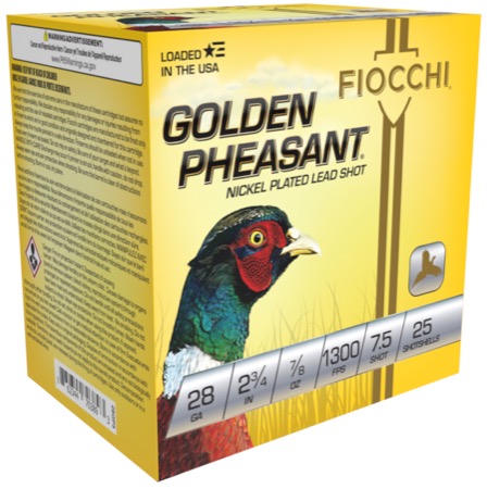 FIOCCHI GOLDEN PHEASANT AMO 28GA 2.75 IN 7/8 OZ #7.5 1300FPS 25-RD ( 10 BOXES PER CASE )