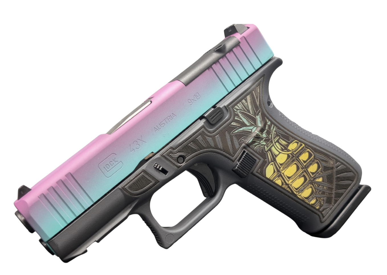 Glock 43x MOS Custom “Glock and Roses Full Engraved Black Cherry Frame” Subcompact Handgun 9mm Luger 10rd Magazines (2) 3.41″ Barrel Austria