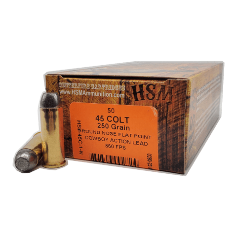HSM AMMUNITION 45 LONG COLT 250GR HL RNFP 50RD BOX 10 BOXES PER CASE