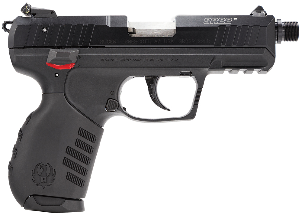 Ruger 3604 SR22 22 LR 10+1 3.50″ Satin Stainless Threaded Barrel, Black Anodized Serrated Slide, Black Polymer Frame w/Picatinny Rail, Black Polymer Grip, Right Hand