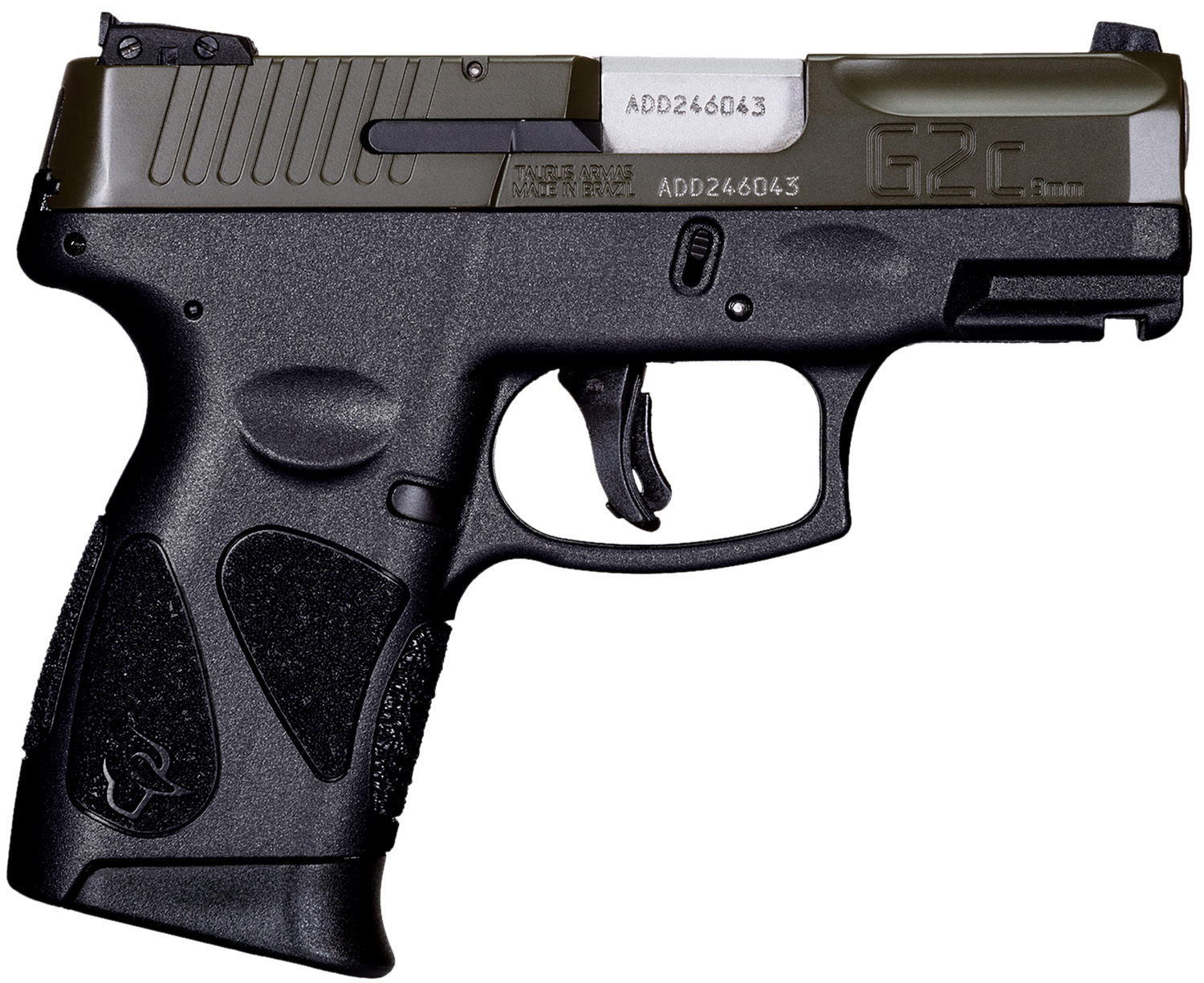 Taurus 1G2C93B12 G2C Compact Frame 9mm Luger 12+1 3.26″ Matte Stainless Steel Barrel, Moss Green Cerakote Serrated Steel Slide, Black Polymer Frame w/Picatinny Rail & Polymer Grip, Right Hand