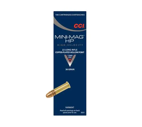 CCI MINIMAG AMO 22LR 36GR HP 100RD (5 PER SLEEVE 50 BOX CASE)