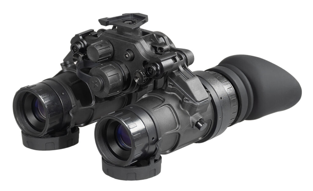 The AGM UNVG-51 is a dual-channel night vision system. The UNVG-51 uses advanced multi-coated optics with an expanded 51 degree field of view and is built to last with a compact composite housing. The device can be outfitted with a Gen 2+ or Gen 3 high-performance image intensifier tube (IIT). The UNVG is also equipped with manual gain control, which adjusts the image brightness, providing the highest possible image quality even in changing light conditions. The independent movement of the tube pods allows for single or dual eye configurations for increased operational flexibility. Each tube automatically turns off when its pod is turned sideways. Operating from a single AA alkaline battery, the UNVG can run up to 15 hours. With an external battery pack (included), the operating time increases to 50 hours. Also equipped with an integral infrared illuminator for reading in the dark. The device can be installing to a either standard dovetail type headset and helmet mount. Includes: Night Vision Goggles, External Battery Pack, Connecting Cable with Battery Adapter, Demist Shield (2), Sacrificial Window (2), Neck Strap, Carrying Case, Lens Cloth, User Manual, AA Battery
