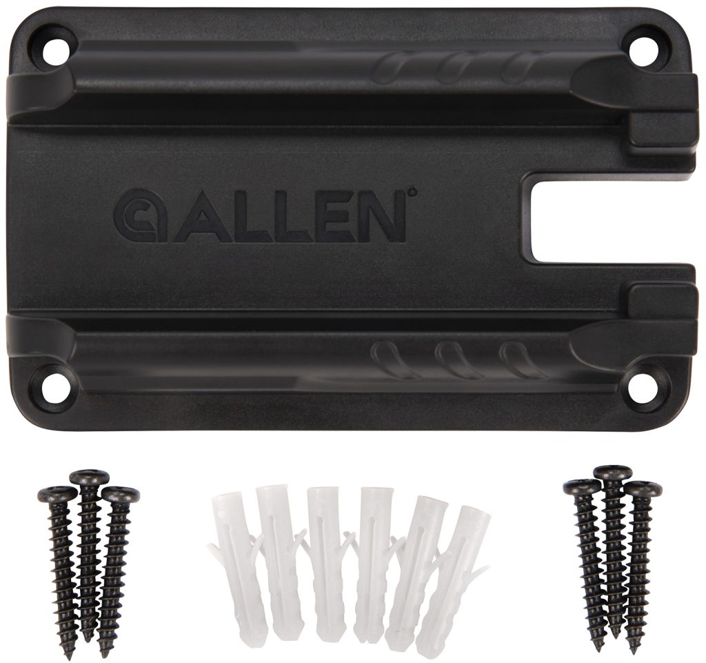 Have your handgun easily accessible with the Allen Company Gun Ready Rail Handgun Magnet, designed to securely hold most semi-automatic handguns. The device is made with heavy-duty materials powered by rare-earth magnets to provide ultimate strength. Constructed with a two-rail system, the gun-ready magnet keeps your firearm aligned vertically for easy access. The mounting device is made with a soft coating material to help keep your firearm free from dings or scratches. Constructed with the compact design, the mounting accessory enables flexible placement and easy installation. Overall measures 2″L x 11″W x 3″H.