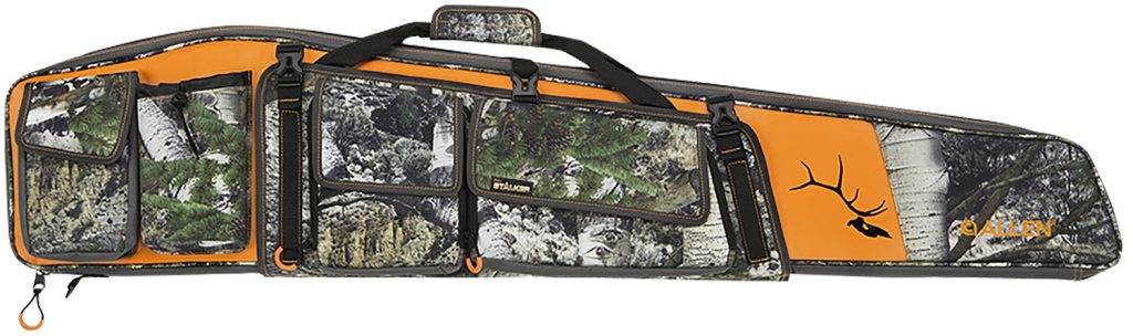 Made with Mossy Oak Mountain Country camo with bright orange accents, the Gear Fit Pursuit Bull Stalker case fits scoped rifles up to 48-inches and features four large pockets designed for what you bring to the hunt. The main front pocket has two rows of organization straps for all your gear. The rear pocket has an adjustable flap closure so you can fit even large accessories in this pocket. The center pouch has a large opening and a drawstring closure to easily fit your scent/cover spray. The inside of the case has heavy-duty, dual-density foam for ultimate protection. The lining is easy clean, and the oversized zippers make it easy to open and close.