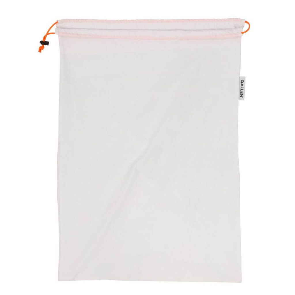 The Backcountry Single Meat Game bag contains a bag 20" wide x 30" long. Features ultra-light washable and reusable with strong construction to securely hold deer or antelope quarters and boned out meat; reflective draw cord with cinch toggle keeps the bag securely closed and easy to find in the dark; breathable wicking material; blaze orange storage pouch is easy to find and keeps you organized; bags are labeled with size and washing instructions for easy reference and identification.