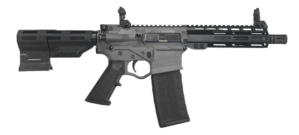 ATI ALPHA MAXX 5.56 PISTOL 7.5″ BBL 7″ HG, SNIPER GREY, PARBRACE, FLIP UPS, 1-30RD