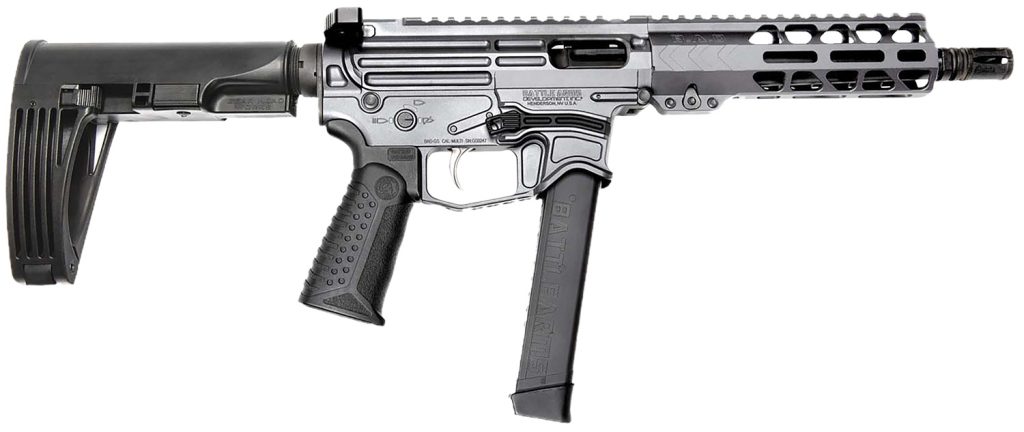The Battle Arms Xiphos series of firearms are purpose-built as the next generation, blow-back AR style pistol caliber firearms. The heart of the firearm is the billet BAD-GS 7075-T6 aircraft grade aluminum receiver and free-float rail handguard with M-LOK attachment points at 3, 6 and 9 oclock positions. At 12 oclock is a full-length Picatinny accessory rail with our signature notch cut matching the upper receiver. Every firearm is equipped with a 4150 chrome-moly steel barrel and 8620 steel black nitride blow-back bolt for ultimate reliability and ease of cleaning. The Xiphos is outfitted with the RACK ambidextrous charging handle with monolithic handle and smooth side sliding latch that is built to take abuse. It is loaded with numerous enhanced components such as our extended magazine release, enhanced takedown/pivot pins for easy tool-less breakdown, one piece magazine catch, enhanced bolt catch, adjustable three position pistol grip and enhanced single side safety.