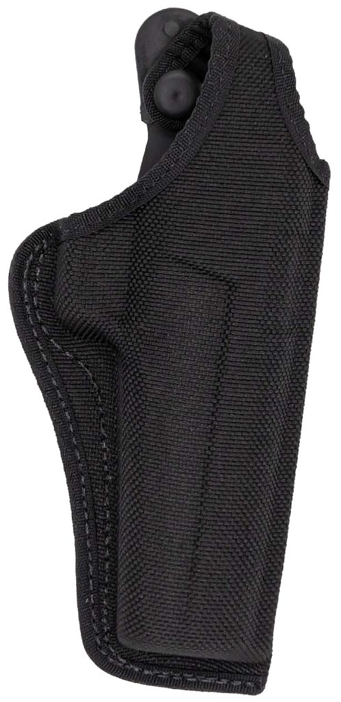 Bianchi’s holster with thumb snap closure is suitable for outdoor and concealment applications. Its trilaminate construction of a closed-cell foam center, poly-knit inner lining and the ballistic weave outer finish offers sturdy protection for the handgun. The holster rides at a 10-13 degree forward angle for an instinctive draw. The Roll-Top thumb break strap wraps cleanly over hammer. The belt slides through the Quick-Slide 1.75″ (45 mm) belt loop. Fits Beretta 8000F/8040F, 8045 Cougar, 8045 Mini Cougar; Glock 19, 23, 29, 30s, 36, 45; H&K USP Compact .40; Kahr T40; Ruger P95; S&W 4566; Sig Sauer P225, P228, P229, P239 .357, P2022; Springfield XD 9mm, .40, .45 (4″); Taurus PT-24/7.
