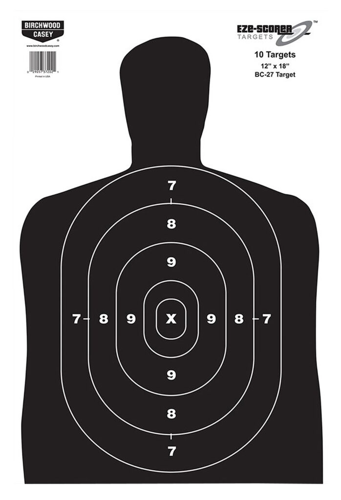 Birchwood Casey 37005 EZE-Scorer BC-27 Silhouette Paper Hanging Universal 12″ x 18″ Black/White 100 Per Pkg