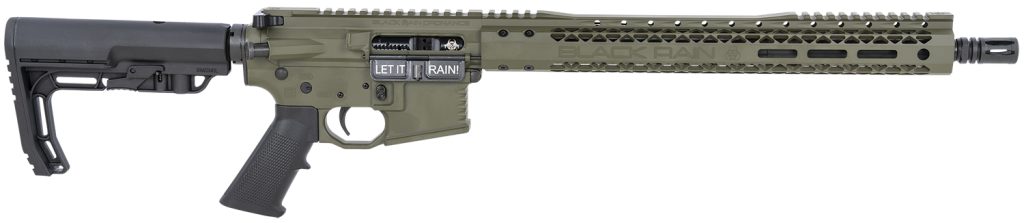 This Black Rain AR features Spec15 forged receiver with a 12″ hybrid handguard, Cerakote finish, MFT Minimalist stock and MFT Grip. It also uses chromloy barrel, GI trigger, A2 flash hider, and Spec15 charge handle.