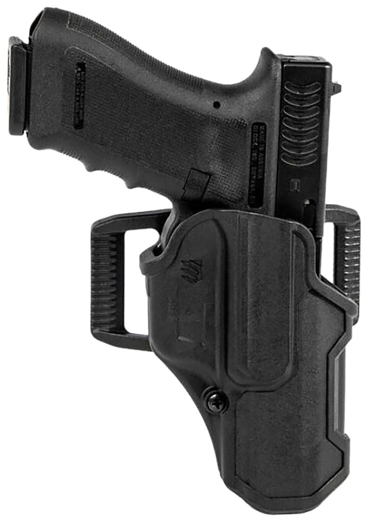 The T-Series is an outside the waistband holster with a low-profile design compatible with slide-mounted red-dot optics. Featuring a thumb-activated retention utilizing Master Grip Principle; polymer construction provides protection with minimal bulk while the low-friction internal material creates a smooth, effortless draw with sound-dampening lining for stealthy drawing and re-holstering. The L2C series is a non light bearing. Fits- Glock 19/23/26/27/32/33/45, not Gen 5 .40 Cal.