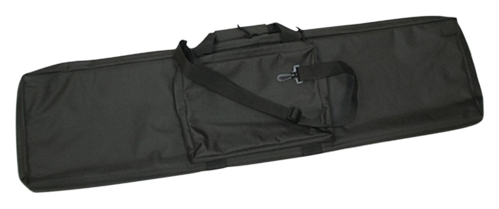 Bob Allen’s 36″ Max-Ops Rectangular Tactical Rifle Case is water resistant. Made of coated poly with poly webbing and has an external magazine storage pocket (10X9). The case has self healing nylon zippers, foam padding and poly webbing carry handles and shoulder strap.