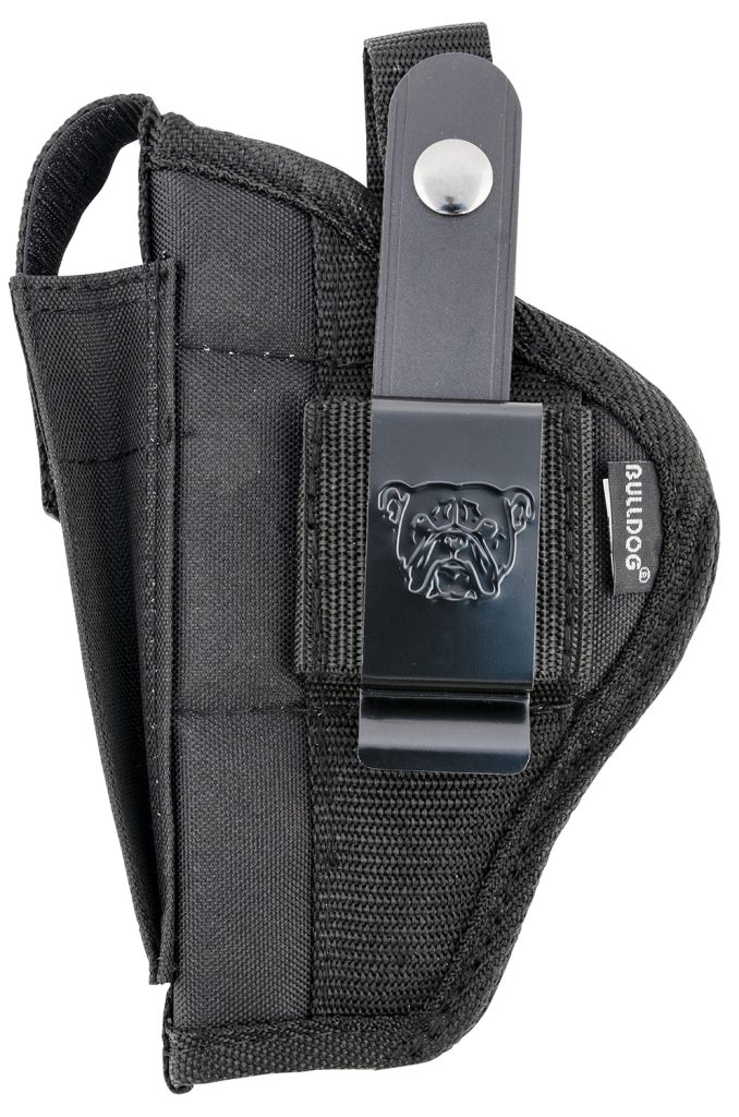 Bulldog’s Extreme holsters have four wall construction. The outer wall fabric is heavy-duty, water-resistant nylon and the inner wall has a vinyl vapor barrier with deluxe padding and a soft, scratch-resistant fabric. It has a spine protector to keep gun sights from tearing the inner lining. Fits standard autos w/2-4″ barrels.