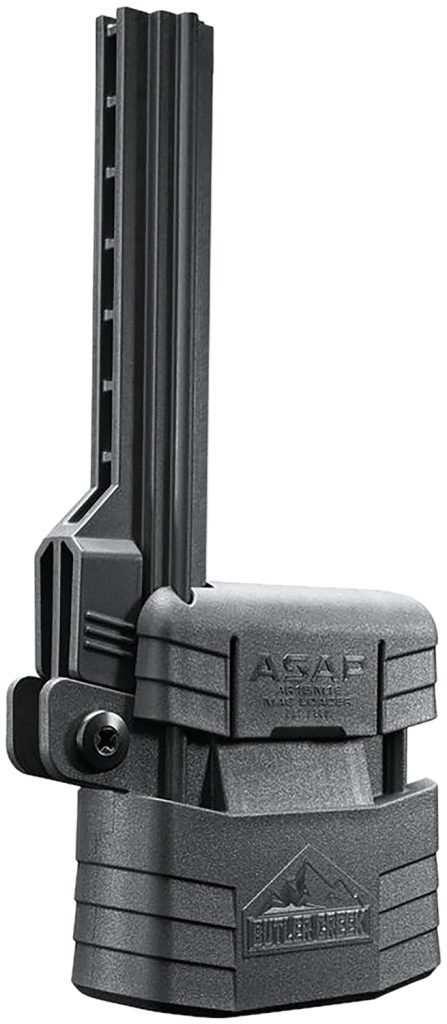 Butler Creek has three ways to load MSR magazines and none involve your thumbs. The Butler Creek ASAP Universal AR15/M16 Magazine Loader fills up mags almost as fast as they can be emptied. Loose ammo can be loaded one round at a time with a simple click or engage the loading arm to expedite the process. The loading arm can handle up to 10 rounds of loose ammo, or ammo in a stripper clip, and the rounds are locked into the mag with a quick push. Spend more time shooting, and less time reloading.