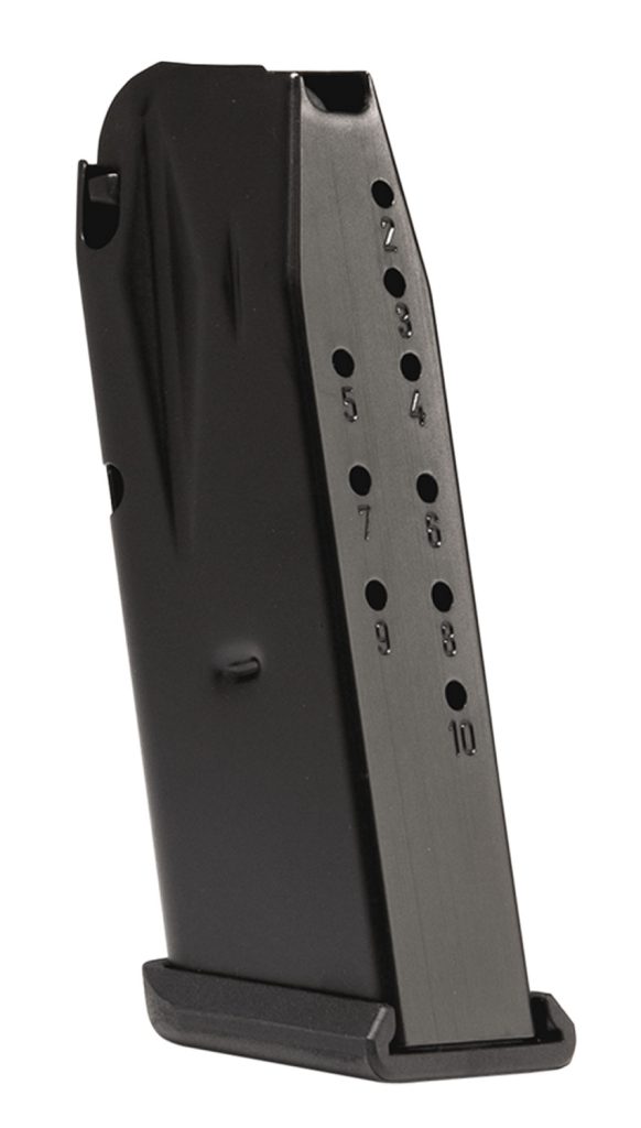 10rd, 9mm Luger magazine is compatible with the Canik TP9 Elite SC. It features a finger rest at bottom of the floor plate.