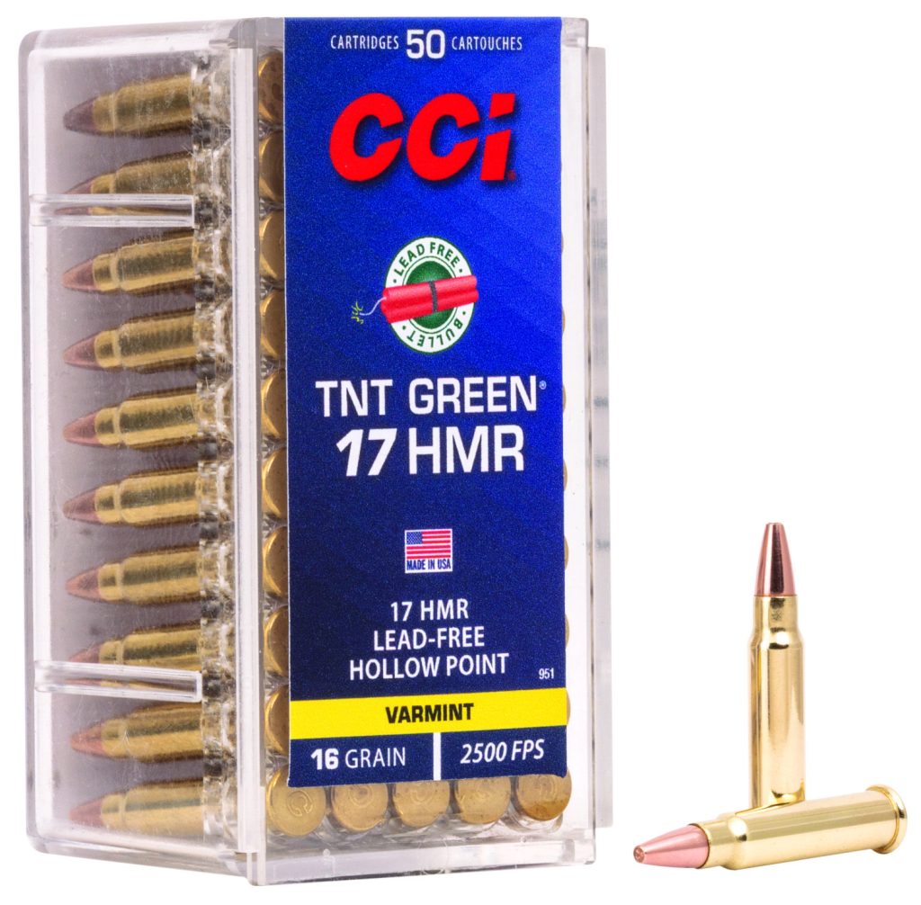 One look is all it takes to know that CCI understands what varmint hunters desire. The Varmint Ammunition line features a variety of bullet technologies that are designed for the same goal: total devastation on impact. The TNT Green load features match-grade accuracy and maximum lethality on varmints in a non-lead bullet. It offers explosive expansion on impact and reliable CCI priming and brass.
