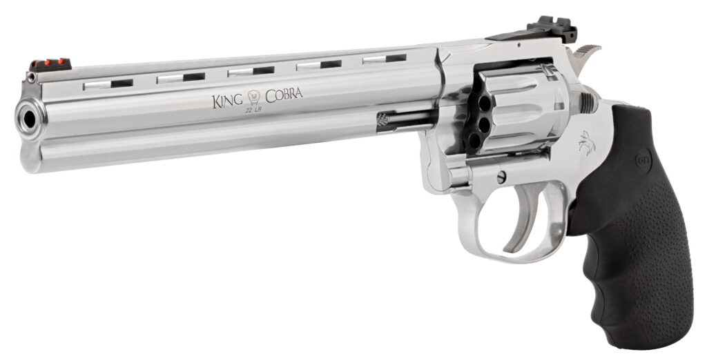 Shooter’s Model are 100% New in the Box products that may have a slight finish imperfection that is not covered by Colt’s one year warranty. The slight imperfection would occur during the manufacturing process and are typically very hard to see except to the well-trained eye or with a magnifier. – Engineered for Durability and Accuracy: Made from forged stainless steel with a one-piece barrel construction this platform is built to withstand the toughest conditions while delivering consistent performance and dependable accuracy. – Competition-Ready Sight System: Outfitted with an adjustable target rear sight and red fiber optic front sight this setup ensures rapid target acquisition and precise shot placement. – High-Capacity Rimfire Platform: Equipped with a 10-round cylinder to maximize shooting time and minimize reloads. Ideal for competitive and disciplined practice sessions. – Unloaded Weight 40.4 oz – Capacity 10 Rounds – Frame Material Stainless Steel – Finish Semi-Polish – Barrel Technical 1:16 RH 6 Groove – Barrel Length 8 – Overall Length 13 – Overall Height 5.25 – Overall Width 1.40 – Front Sight Red Fiber Optic – Rear Sight Fully Adjustable – Trigger Action Double and Single-Action – Trigger Weight 7-10 lbs DA 3-4 lbs SA – Grip Hogue® OverMolded Rubber Grips