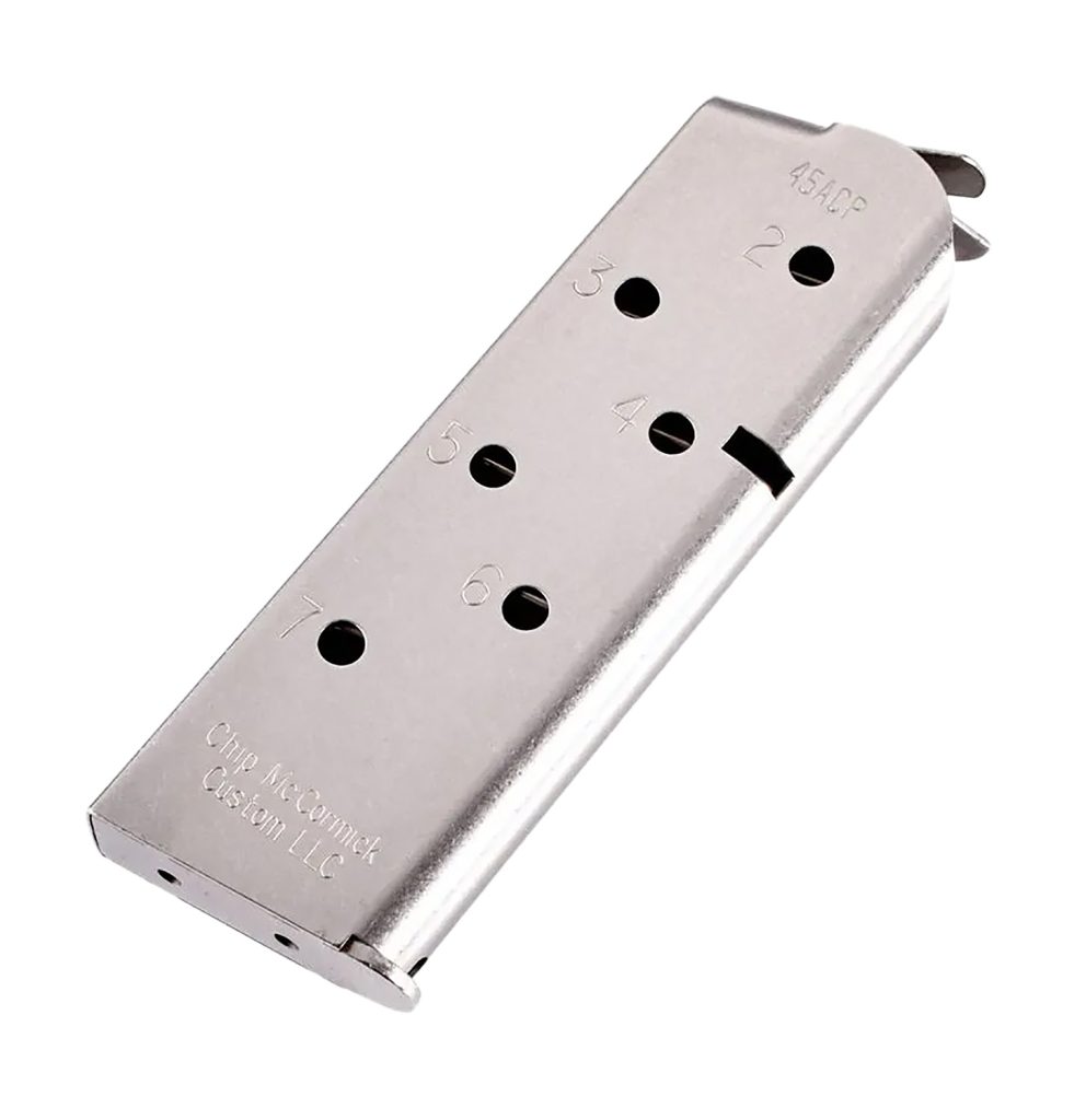 The Match Grade 1911 magazine from CMC is a traditional USGI-style fixed base magazine with improvements in follower design, feed lip geometry, and materials. Its die-controlled tolerances are held to +/- .001″ which is more than 75% tighter than magazines made to typical military specifications. Springs are made from aerospace-grade rocket wire and large viewing holes are numbered to quickly determine round count at a glance. The stainless steel Match Grade features a welded base plate for the ultimate in durability, drilled for base pad. (sold separately)