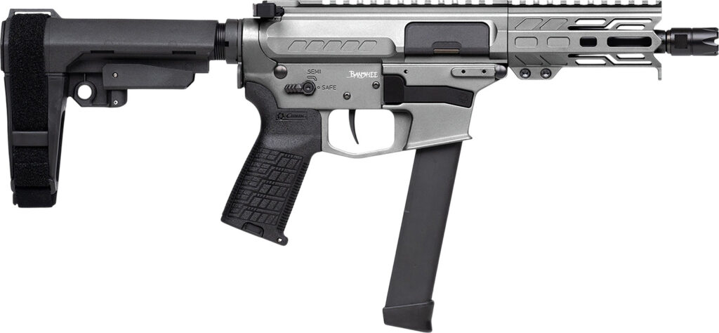 The CMMG Banshee FR MkG 9mm AR pistol that uses the double stack 9mm Glock-pattern magazines. Equipped with a host of essential AR features like last round bolt hold open, this 9mm BANSHEE MkGs is one of the most versatile pistol caliber carbines/personal defense weapons ever made. Featuring quick deploying RIPBRACE; EML handguards with full length M-LOK slots on both sides and the bottom of the handguard as well as M-LOK between the top Picatinny rail sections, you’ll always have enough space for those must have accessories. Includes 33rd Glock magazine.