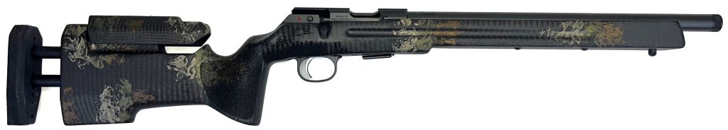 A constant in the rimfire line the Precision Trainer was designed to provide the same look and feel as a full-size tactical rifle while allowing for more economical training. Based off the PRS1 stock this special Manners carbon-fiber composite stock provides a rock-solid platform and is finished in a two color camouflage pattern with a base of carbon fiber peeking through the background. The stock itself has multiple layers of carbon fiber and fiberglass hand-laid in high-temperature epoxy resins then placed in a vacuum and heat-cured to create the perfect resin-to-fabric ratio. Combined with a cold hammer forged Varmint barrel (threaded 1/2×28) the Precision Trainer is a paper-puncher with surgical precision.