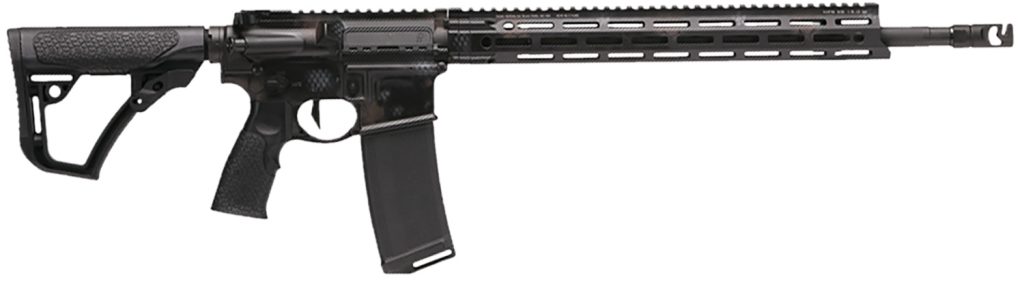 The DDM4 V7 Pro was designed for competitors looking for a platform to dominate podiums in today’s popular multi-gun matches. The V7 Pro comes standard with a MFR 15″ M-Lok rail, and an uninterrupted Picatinny rail on top. The long 15″ rail gives operators the option to have the support hand extended out closer to the muzzle, while the larger charging handle latch provides easier manipulation under magnified optics. It has a cold hammer-forge barrel with a Gen II muzzle climb mitigator and a rifle length gas system which provides smooth and reliable cycling under any condition. The receivers are CNC machined of 7075-T6 aluminum with an enhanced flared magazine well and rear receiver QD swivel attachment point. The DDM4 V7 Pro also has a Geissele Automatics Super Dynamic 3 Gun trigger, Daniel Defense buttstock and pistol grip with soft touch overmolding. This 5.56 NATO model has a 18″ barrel and Daniel Defense Rattlecan finish; a hybrid paint scheme which blends Daniel’s proprietary Tornado and Mil Spec + Cerakote finishes.