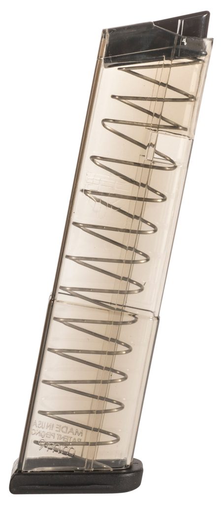 The ETS pistol mag is constructed of an extreme impact resistance advanced polymer with superior heat, cold and UV resistance, translucent body, and is creep resistant which means the feed lips and body won’t spread when being stored long term even when fully loaded. This mag features an easy disassembly with ETS’s specially designed base plate and is also designed to be compatible with Glock extensions. The ergonomically designed floor plate makes it easy to grab from mag pouches.