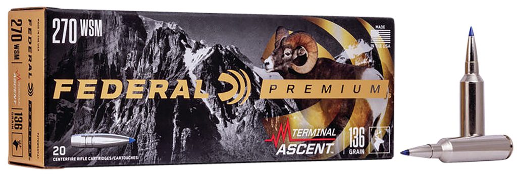 The Federal Premium loads start with the finest primers, which are subjected to more frequent inspections for dimensional tolerances and charge weight to ensure they deliver consistent ignition for every shot. Next is the propellants, which are specially formulated to meet Federal’s stringent specifications. These clean-burning powders are of the highest grades in the industry. They’re consistent and reliable. Lastly, the casing. The precision-built cases in most centerfire Premium loads feature nickel-plated brass that defeats corrosion and aids in sleek, smooth extraction in even the most extreme conditions. Go beyond what you ever thought possible with Terminal Ascent. Bonded construction penetrates deep on close targets, while the patented Slipstream polymer tip initiates expansion at velocities 200 fps lower than comparable designs. The bullet’s long, sleek profile offers an extremely high ballistic coefficient, and its AccuChannel groove technology improves accuracy and minimizes drag.