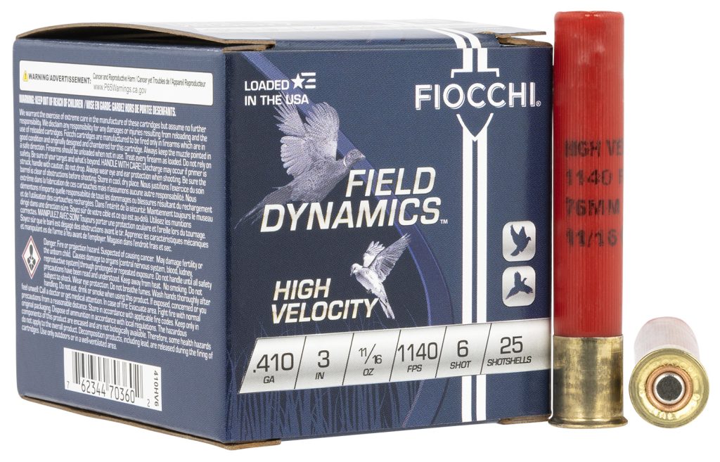 Fiocchi 410HV6 Field Dynamics High Velocity 410Gauge 3″ 11/16oz 6Shot 25 Per Box/10 Case