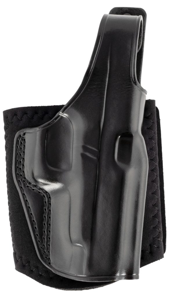 The Ankle Gloves wide neoprene ankle band and hook-and-loop closure offer extended wearing comfort and unmatched security. Additional comfort is provided by sheepskin padding between the holster and ankle. It features a reinforced thumb break for speed of draw and detailed molding for firearm retention; neoprene ankle band with hook-and-loop fastener and fits ankles up to 13″ in circumference. Compatible with Glock 48/48 MOS.