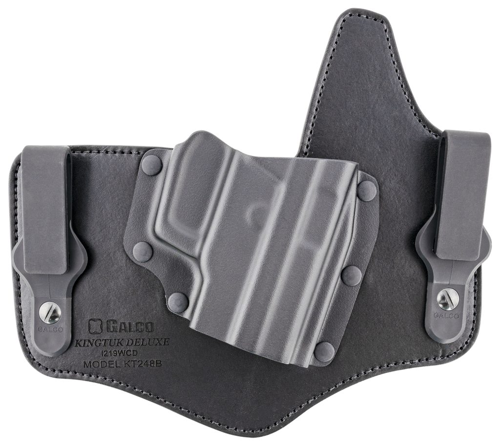 Galco’s KingTuk Deluxe tuckable IWB reigns supreme in comfort, speed and versatility. It provides a comfortable backing plate made of saddle leather and lined with Premium Center Cut Steerhide, with a rigid Kydex holster pocket for a fast draw and easy holstering. It includes Galco’s patent-pending polymer UniClip and Ultimate Stealth clip designs for excellent concealment, stability and easy on-off capability. The clips can be moved up or down in the corresponding holes in the leather, enabling the user to set the carry height and angle to suit their unique preferences. Fits Canik TP9SA; Sig-Sauer P220 (DA), P220 Combat (DA), P220 w/rail (DA), P220R Carry (DA), P226 (DA), P226 MK25, P226 w/rail (DA), P226 w/rail bobbed hammer, P227, P228, P229 (DA), P229 w/rail (DA), P229 w/rail bobbed hammer.