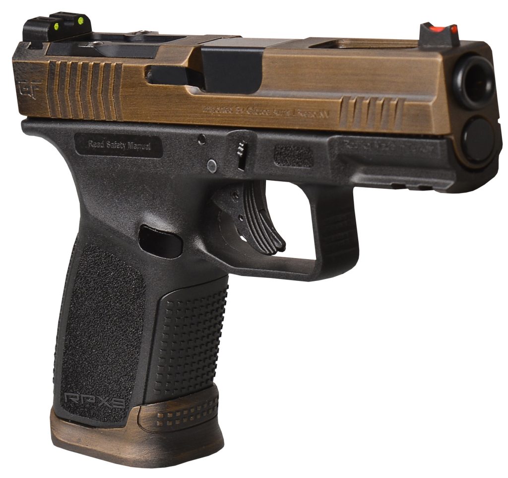 DESCRIPTION GFORCE ARMS RPX3C9 9MM 15+1 RND 4 BRL BNZ WINDOW CUT SLIDE BLK FRAME – MODEL RPX9 – MANUFACTURER RADIKAL – TYPE SEMI-AUTO PISTOL – CALIBER 9X19MM – BARREL LENGTH 4.02 – OVERALL LENGTH 7.3 – SIZE CATEGORY COMPACT – CAPACITY 15+1 – WEIGHT 24oz UNLOADED – TRIGGER PULL WEIGHT 5.5LBS (+/- 0.5LB) – FRAME COLOR BLACK – SLIDE COLOR CERAKOTE BATTLEWORN BURNT BRONZE – SLIDE FINISH CERAKOTE BATTLEWORN BURNT BRONZE – BARREL FINISH QPQ – RECEIVER MATERIAL POLYMER – BARREL MATERIAL 4140 STEEL – SLIDE MATERIAL 4141 STEEL – MAGAZINE CAPACITY 15 ROUNDS – NUMBER OF MAGS INCLUDED 1 – SIGHTS STEEL RIBER OPTIC FRONT & REAR – OPTIC FOOTPRINT RMR – ADDITIONAL FEATURE #1 GLOCK 19 GEN 3&4 PART COMPATIBILITY – ADDITIONAL FEATURE #2 FRONT AND REAR SLIDE SERRATIONS – ADDITIONAL FEATURE #3 GLOCK 19 HOLSTER COMPATIBLE – ADDITIONAL FEATURE #4 GLOCK 19 & 17 MAGAZINE COMPATIBLE – ADDITIONAL FEATURE #5 SLIDE WINDOW CUTS – WARRANTY 5 YEAR FULL WARRANTY
