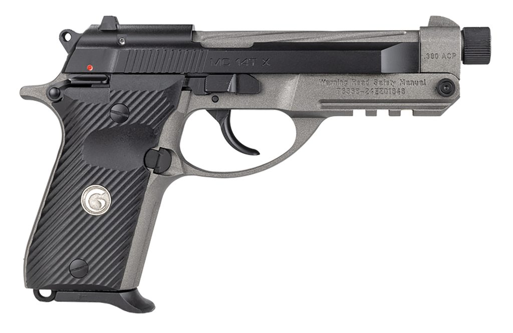 Girsan 390890 MC 14TX 380 ACP 13+1 4.90″ Tungsten Cerakote Spiral Fluted Threaded Tip-Up Barrel, Matte Black Serrated Steel Slide, Tungsten Cerakote Aluminum Frame w/Picatinny Rail, Black G10 Grip