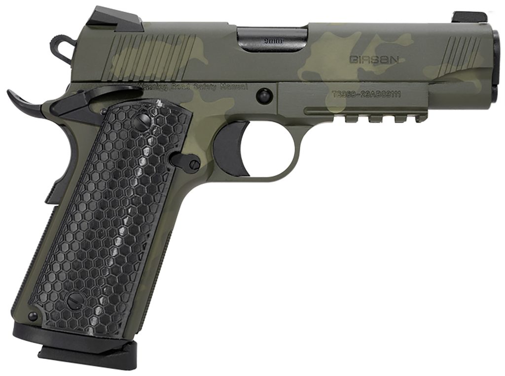 Girsan 392071 MC1911 C Untouchable Compact Frame 9mm Luger 9+1 4.40″ Black Steel Barrel, OD Camo Serrated Steel Slide & Frame w/Beavertail & Picatinny Rail, Black Polymer Grip