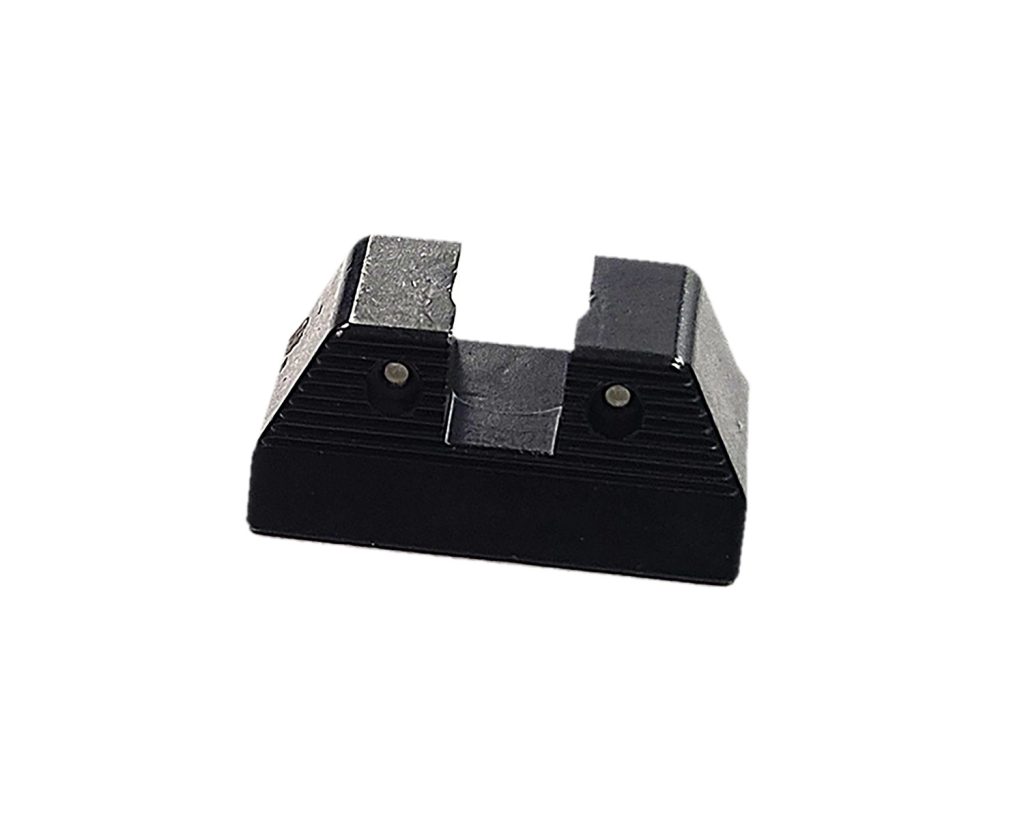 Heckler and Koch VP9, VP40, P30, HK45 Sight Set. Featuring a green dot front sight, this elevated sight set is designed for the HK VP9, VP40, P30, and HK45 model pistols. The contrast between the green dot front sight and matte-black rear sight sights allows for quick target acquisition. This night sight set features a 0.250″ front sight height and 0.3525″ rear sight height.