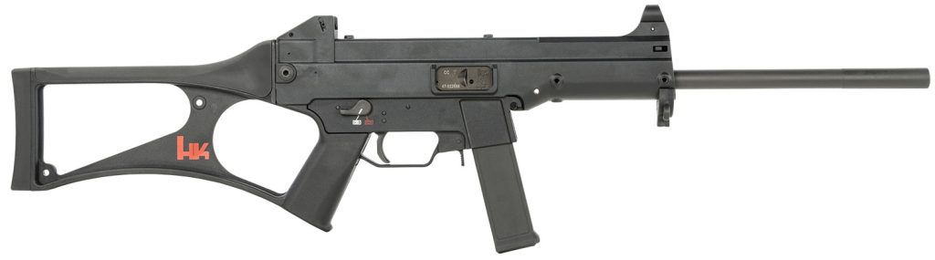 The HK USC is a civilian utility carbine that uses the classic hard-hitting .45 ACP cartridge. Matched with a simple and ultra-reliable blowback operating system, the HK USC is a radical departure from traditional firearms designs. Extensive use of durable, tough, corrosion proof, reinforced polymers found on HK’s line of military and police arms ensures lightweight and durability and the highest grade of weapons steel is used in the cold hammer forged target barrel and the solidly constructed bolt mechanism. The skeletonized buttstock is capped with a comfortable rubber cheek rest and recoil pad. The web of the pistol grip is open for a comfortable handhold for a wide range of shooting applications. Hard points located on the top and sides of the receiver and handguard make attachment of optional Picatinny rails easy allowing almost any kind of accessory to be mounted. Features ambidextrous safety/selector lever and oversized trigger guard for easy operation while wearing gloves. Includes a polymer 10rd magazine.