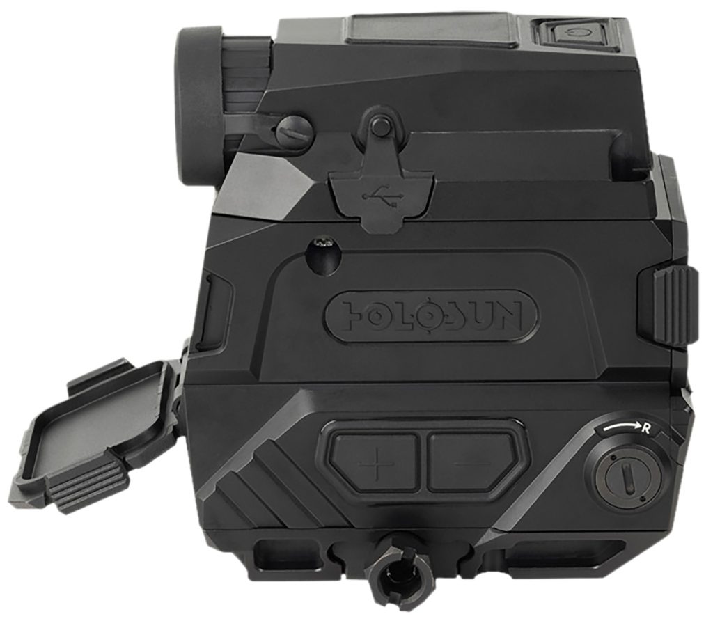 The DRS-NV (Digital Rifle Sight-Night Vision) is a red dot and digital night vision fusion sight that combines Holosuns red dot sight technology with digital night vision capability. DRS-NV features an LED MRS (Multi-Reticle System) with three digital reticle options, 1024×768 resolution digital night vision sensor with up to 60fps, 8x digital zoom, digital image and video recording with on-board storage. The DRS is powered by two 18350 rechargeable flat-top batteries with 6 hour run time in full function mode and 8 hours of run time in observation mode. An onboard magnetic coupler connects DRS to USB power for charging the batteries or to a PC for downloading of recorded images and video. DRS-NV units amplify light to improve low light visibility. Moonlight and starlight provide sufficient lighting in most cases, however, during periods where cloud cover blocks moonlight and starlight, an external infrared (IR) illumination source is needed. Holosun recommends one of our laser devices with IR Illumination such as the LE321, or LS321. Verify your local and/or state laws before attaching and IR illumination device to a firearm with a night vision device. IP67 Waterproof.