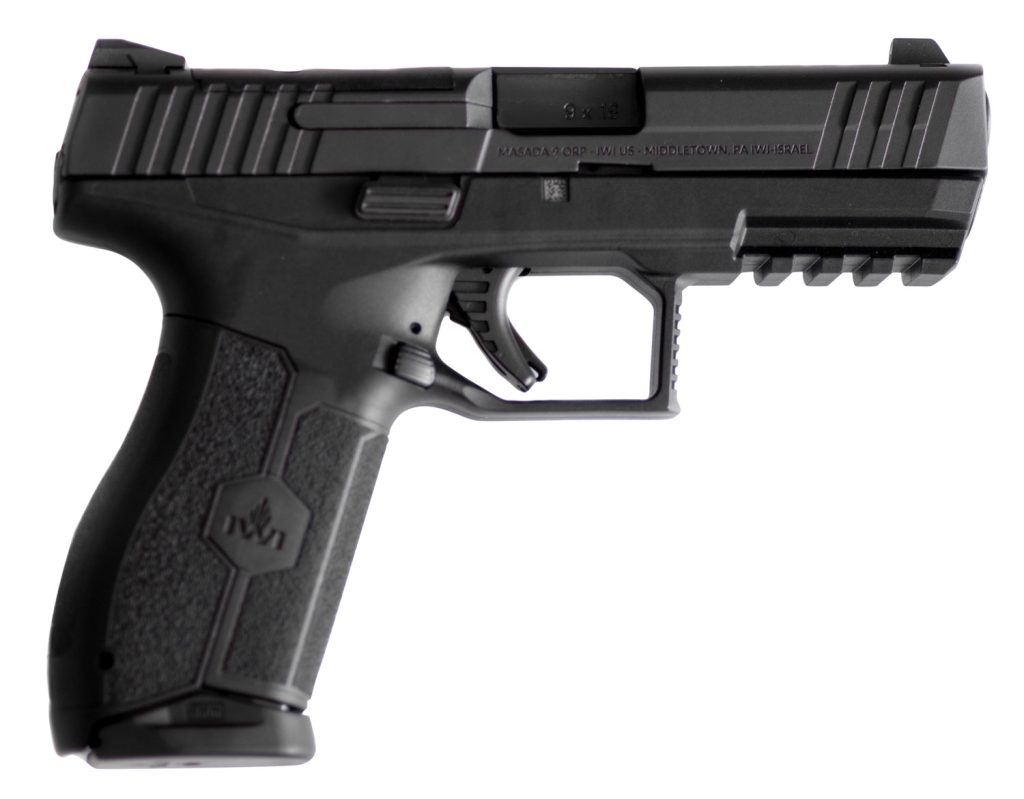 IWI MASADA polymer frame striker-fired pistol features a low profile barrel for reduced perceived recoil; fully ambidextrous controls; enhanced ergonomics; deep beavertail; built-in trigger safety, the pistol will not fire unless the trigger is pulled; large trigger guard for use with or without gloves; enhanced grip texture which enables faster follow-up shots in all conditions and fully ambidextrous operating slide stop lever and magazine release. Includes two magazines, four adapter plates (RMR, Venom, Delta Point and Romeo1) and three interchangeable wrap around back-straps.