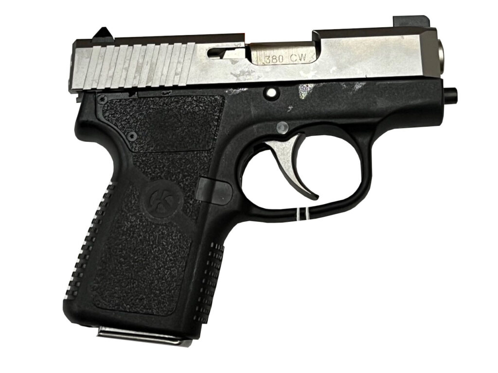 Action: DAO – Caliber: .380 ACP – Capacity: 6 – Finish: Black/Stainless – Grip: Textured Polymer – Sights: Night – Twist: 1:16 – Barrel Length: 2.58 – Overall Length: 4.96 – Weight: 10.2 oz – The CW380 pistol has a 2.58 inch barrel an overall length of 4.96 inches and a height of just 3.9 inches. It weighs just 10.2 ounces without a magazine. The pistol has a black polymer frame and features 4140 steel inserts molded into the front and back of the frame for added rigidity. It has a machined solid 416 matte stainless steel slide and a textured polymer grip. – The Kahr CW380 features a lock breech modified Browning type recoil lug and utilizes Kahr’s seven patents including the safe cam action found in all Kahr pistols. The result is a micro-compact pistol with very little recoil and quick follow-up shots. The pistol features drift adjustable white bar-dot combat rear sight and pinned-in polymer front sight. – Differences between the Kahr CW380 and Kahr P380 models include: the CW series has a conventional rifled barrel instead of the match grade polygonal barrel found on P models; the CW slide stop lever is MIM (metal-injection-molded) instead of machined; the CW series slide has fewer machining operations and uses simple roll marking instead of engraved markings; the P380 comes with two magazines but the CW series comes with one 6 rd steel magazine with flush baseplate. Lastly the slide locks back after firing the last round-another feature missing on a number of other value-priced compact semi-auto pistols. The durability and reliability of the CW380 model makes it a strong consideration as a backup gun for law enforcement.
