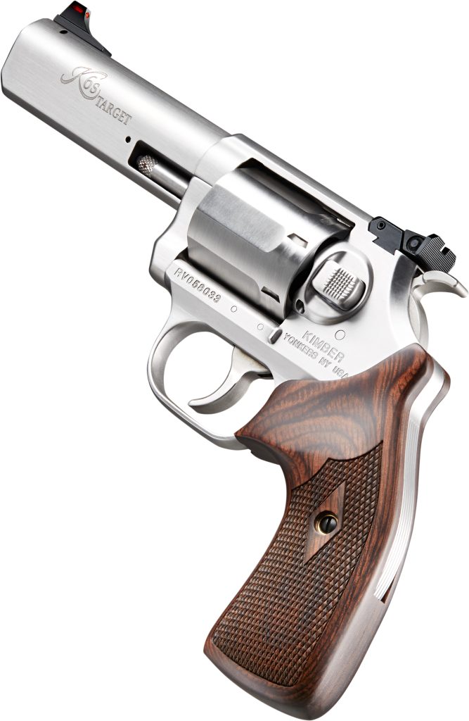 The K6s (DASA) is next evolution of the Kimber revolver product line that takes the acclaimed K6s system and outfits it with a double and single action trigger mechanism. The platform maintains the benefits of the original K6s such as the outstanding double action trigger pull compact envelope and six shot capacity but with the added advantage of a single action trigger. The 4 Target model features an extended grip for superior comfort and a target adjustable rear sight for pinpoint accuracy with any loading. – Specifications – Height (inches): 5.25 – Weight (ounces): with empty cylinder: 29 – Width (inches): 1.39 – Length (inches): 8.62 – Cylinder capacity: 6 – Action: DA/SA – Frame – Material: Stainless Steel – Finish: Engraved over Brushed Stainless – Serrated backstrap – Barrel – Length (inches): 4 – Material: Stainless Steel – Finish: Engraved over Brushed Stainless – Sights – White 3-Dot – Radius (inches): 6.2 – Grips – Walnut Target Grip – Diamond Checkering – Trigger – Non-Stacking – Double Action Factory setting (approx. pounds): 9.5-11.5 – Single Action Factory setting (approx. pounds): 3.25-4.25