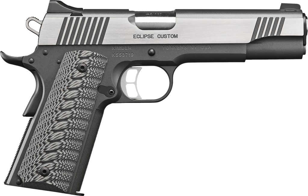 Performance has never looked so good. Kimber Eclipse pistols have a striking brush-polished finish and special Custom Shop features, including 30 lines-per-inch front strap checkering and a Premium Aluminum Trigger