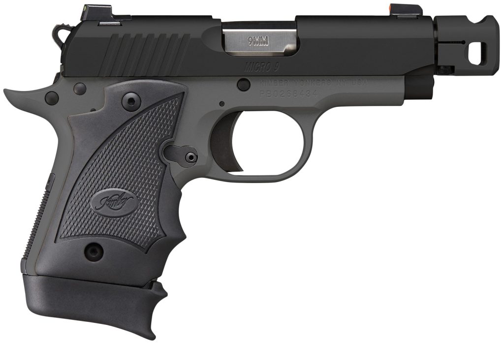 Micro slides are made to the tightest allowable tolerances, with barrels machined from stainless steel for superior resistance to moisture. All Micro frames are shaped from the aluminum for integrity and strength. In many respects a miniature 1911, among the most important Micro design advantages is a single action trigger with the kind of short, smooth pull that ensures accuracy and builds confidence. The thumb safety, slide release and magazine release are 1911 as well. Standard features include a lowered and flared ejection port for flawless ejection; beveled magazine well for fast, positive loading; mini-compensator which reduces muzzle rise and perceived recoil; topped with Truglo Tritium Pro night sights and Hogue rubber wraparound grips.