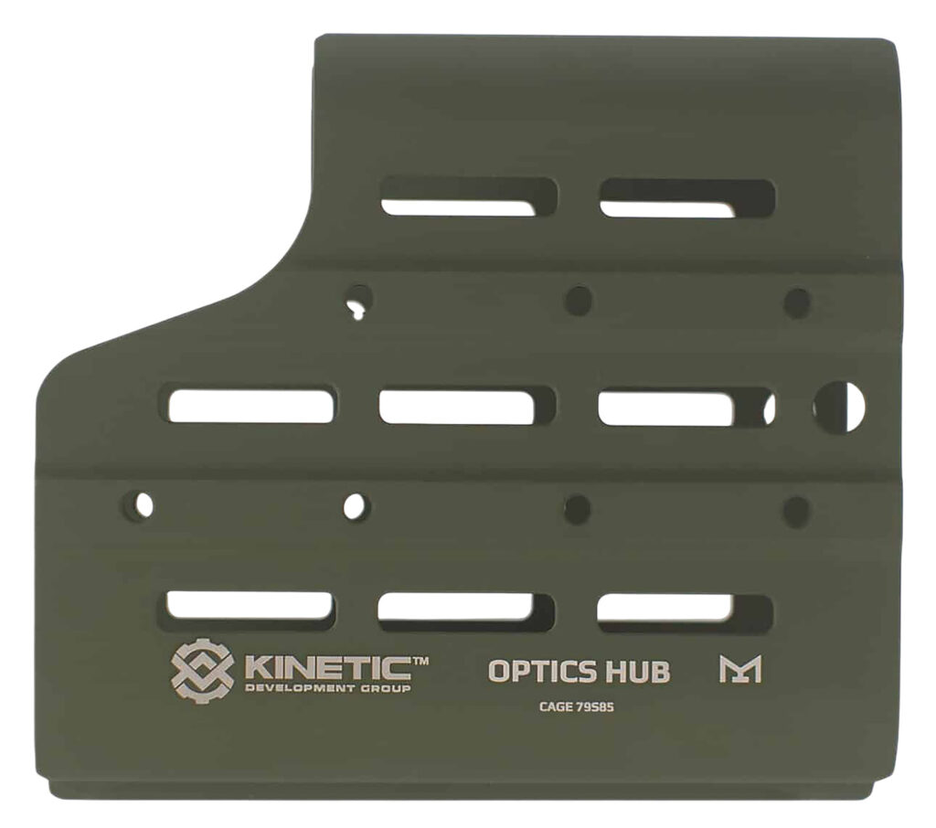 The Optics Hub is a complete ecosystem for your spotting scope and accessories. Its innovative design allows you to seamlessly integrate all your essential gear, including laser rangefinders, mini-red dots, laser target designators, dope cards, Kestrels, and more. The Ultimate Spotting Scope Cover: The Optics Hub doubles as a robust spotting scope cover, shielding your optics from dust, debris, and the elements. Its durable construction and precise fit ensure maximum protection, while the integrated accessory mounting system allows you to maintain a streamlined profile. Unmatched Versatility: The Optics Hub is compatible with a wide range of spotting scopes from various manufacturers, making it a truly universal solution. As long as your optic fits inside the Hub, you’re ready to dominate the field. Enhanced Accuracy and Efficiency: Co-align your accessories with the center focal point of your scope for rapid target acquisition and data collection. Acquire targets, gather crucial information, and make critical decisions without ever breaking your field of view. Superior Durability: Crafted from lightweight yet robust 6061 T6 aircraft-grade aluminum alloy and finished with a durable Cerakote coating, the Optics Hub is built to withstand the rigors of demanding field use. Concealed Operations: The NIR Cerakote coating provides anti-infrared reflectivity, making the Optics Hub ideal for clandestine operations where night vision technology is a factor. Remain undetected and maintain the upper hand, whether facing nocturnal wildlife or enemy forces.
