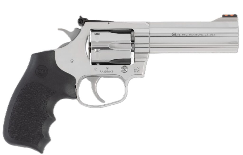 Colt, MFG# KCOBRA-SB4RTS, UPC: 98289001719, UOM: EA, King Cobra Target, .357 Magnum, 4.25″ Barrel, Red FO Front Sight, Stainless, Black Hogue grips, 6-rd, COLT, COLTHG20, COLTHGALL, HG20, HGALL