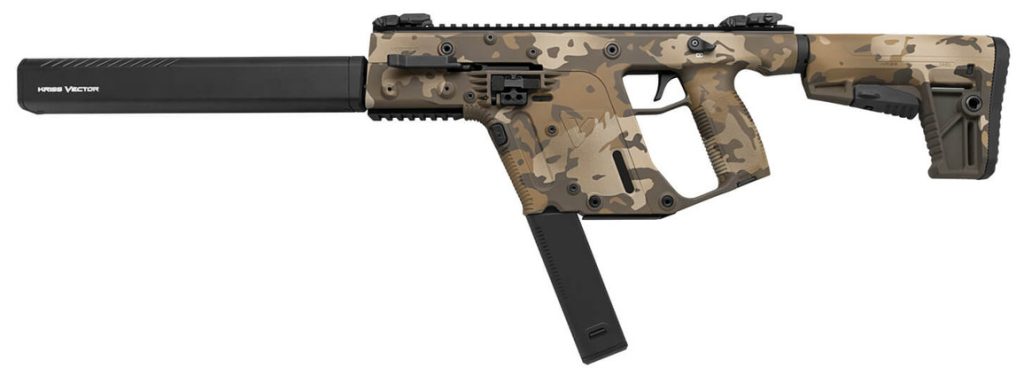 The KRISS Vector CRB is our most widely accessible model with a rifle length barrel the Vector CRB is compliant in most states.The Vector CRB is the ideal choice for recreational use and competition in pistol caliber carbine divisions.Like all KRISS Vector firearms the CRB is fed with full size Glock® magazines allowing for a wide range of large capacity options. – Features – Semi-Automatic – Closed Bolt Delayed Blowback – 4140 Chrome Moly Threaded Barrel With Black Nitride (QPQ) Finish – Square Barrel Shroud – Glock Magazine Compatible – 2-Stage Quick Reset Trigger – 6 Position Collapsible Stock – Low Profile Flip Sights – Caliber 45ACP – Model Vector CRB – Action Semi-Automatic – Operating System Closed Bolt Delayed Blowback – Barrel Length 16.0 In – Overall Length Collapsed 35.25 in / 895 mm – Overall Length Extended 38.25 in / 978 mm – Magazine(s) included (1) 30 Rounds – Color MC Flat Dark Earth Camo CERAKOTE® Coating – Weight 8.0 lb / 3.6 kg – Barrel Material 4140 Chrome Moly – Barrel Finish Black Nitride (QPQ) – Twist Rate 1:10 RH – Trigger Type 2-Stage Quick Reset Trigger – Stock 6 Position Adjustable Stock – What’s in the Box – (1) KRISS Vector Firearm – (1) Magazine – (1) Cleaning Kit – (1) Cable Lock – (1) User Manual – (1) Warranty Card