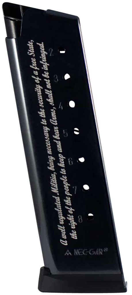 Mec-Gar magazines are made in Italy with the most sophisticated technologies and best materials. This mag features a high-impact polymer follower, heat treated carbon steel tube, and a high-impact floor plate. This mag features an engraved 2nd Amendment.