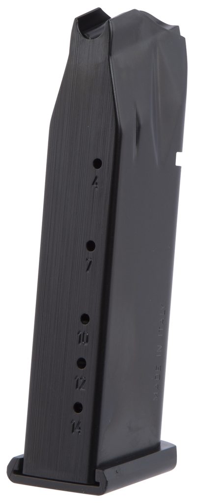 Mec-Gar magazines are made in Italy with the most sophisticated technologies and best materials. This mag features a high-impact polymer follower, heat treated carbon steel tube, and a high-impact polymer floor plate that sits flush with the pistol. NOTE: This mag is not compatible with Para pro custom P14 pistol or aftermarket polymer base pads.
