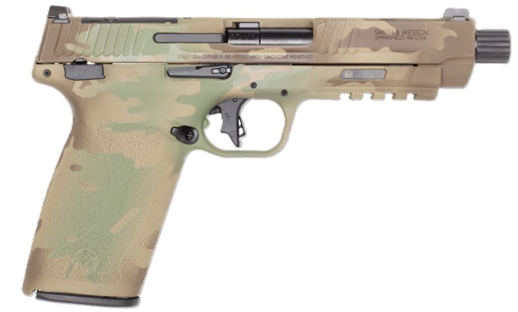 Smith & Wesson, MFG# 14183, UPC: 022188898521, UOM: EA, M&P 5.7, 5.7x28mm, 5″ Threaded Barrel, NTS, White Dot Sights, MultiCam, 22-rd, IVS Exclusive, SMIT, SMITHG10, SMITHGALL, HG10, HGALL